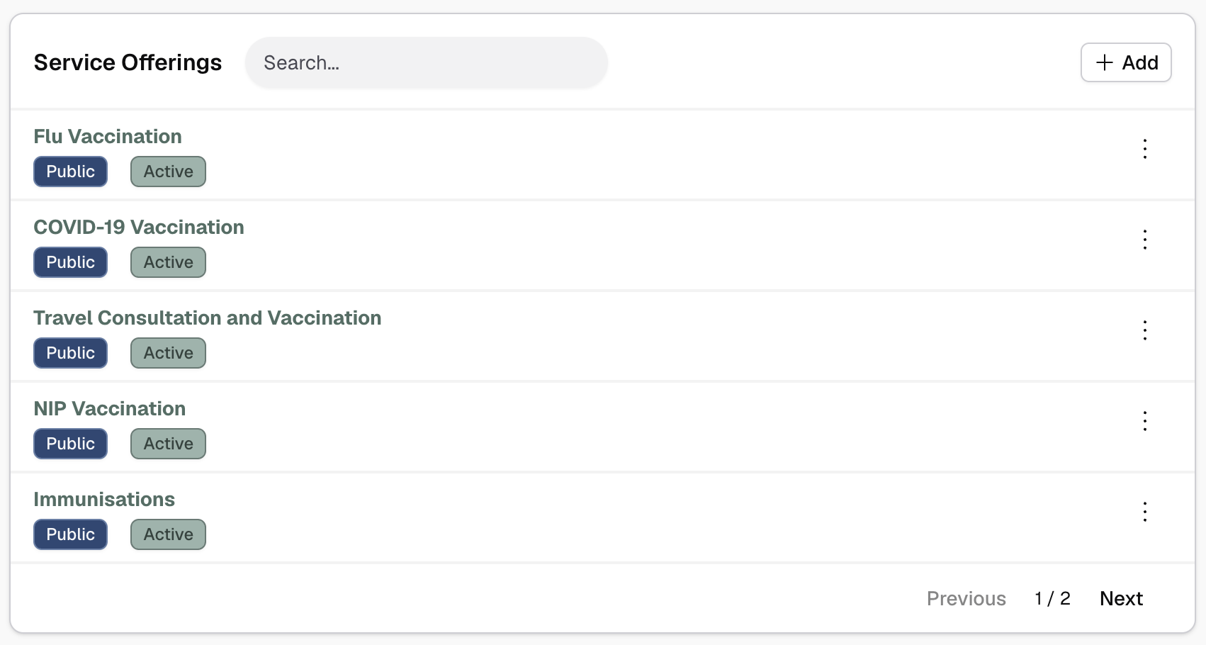 You will typically configure your service offerings during onboarding. These can then be updated from the Settings page.